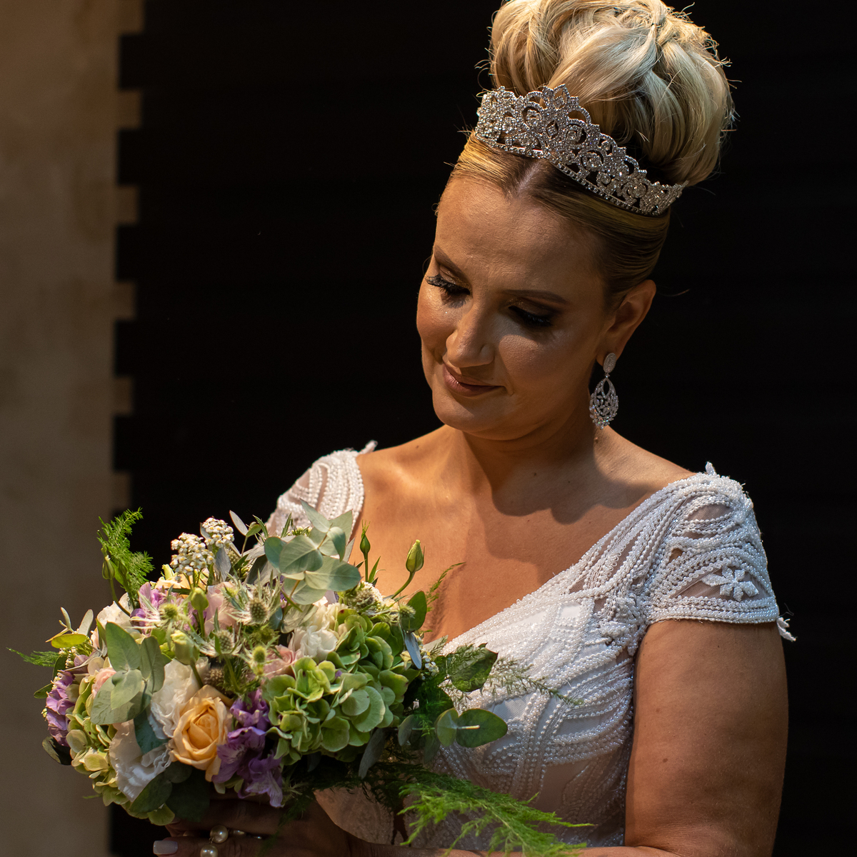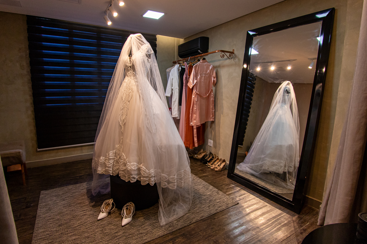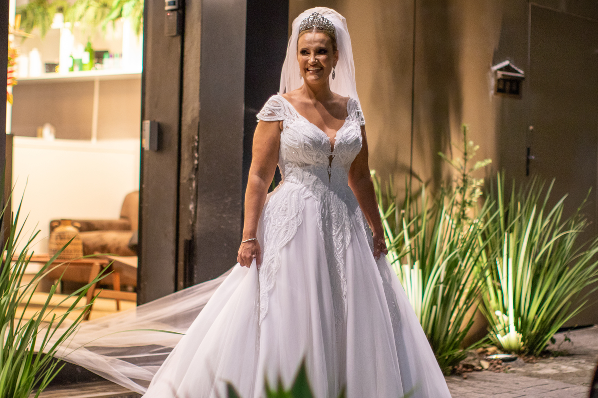 É ali que a noiva respira fundo, abraça a mãe, segura o buquê pela primeira vez…
