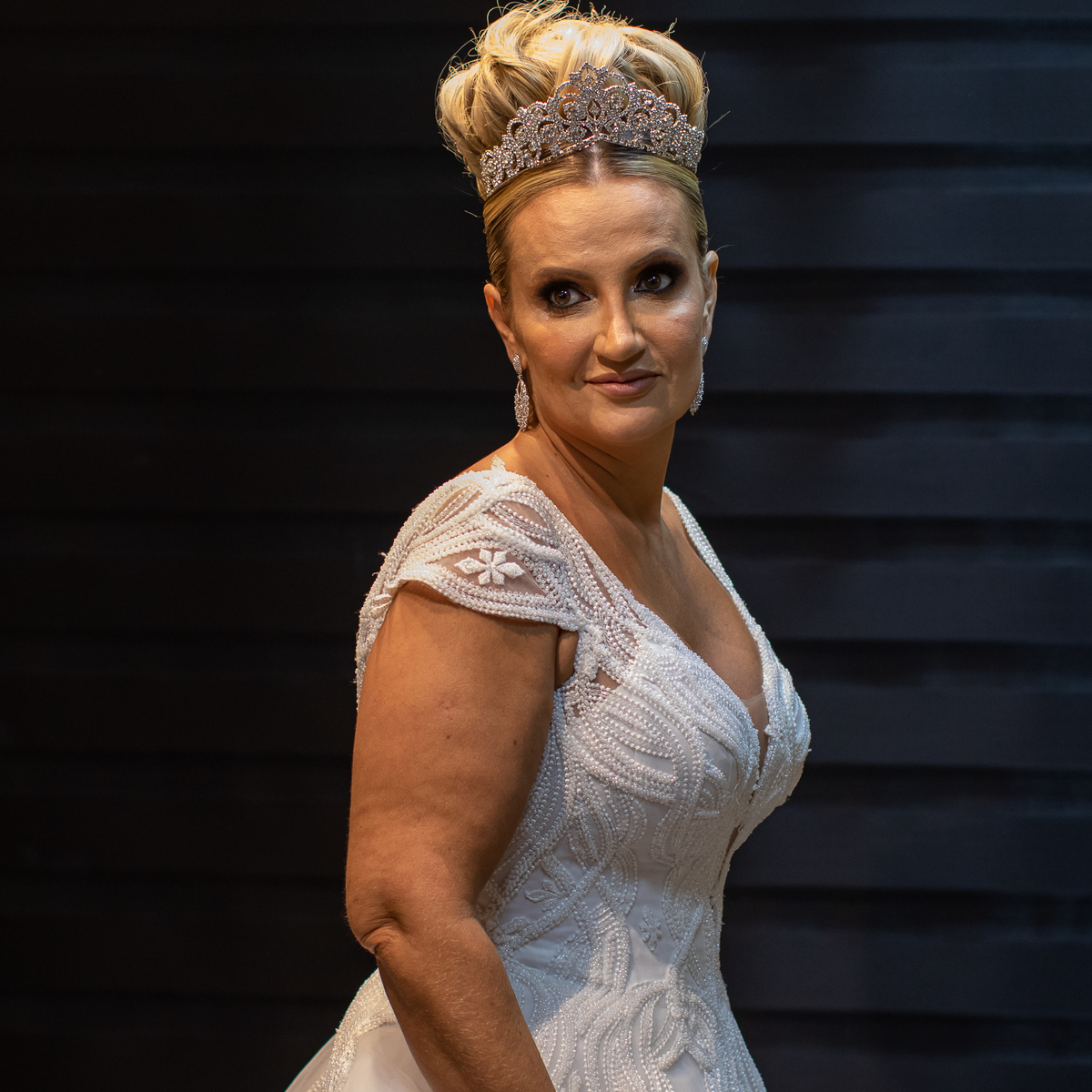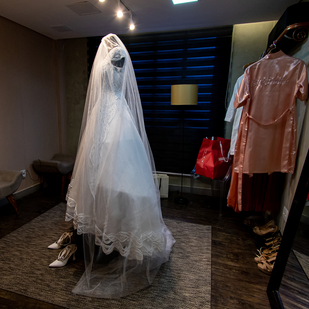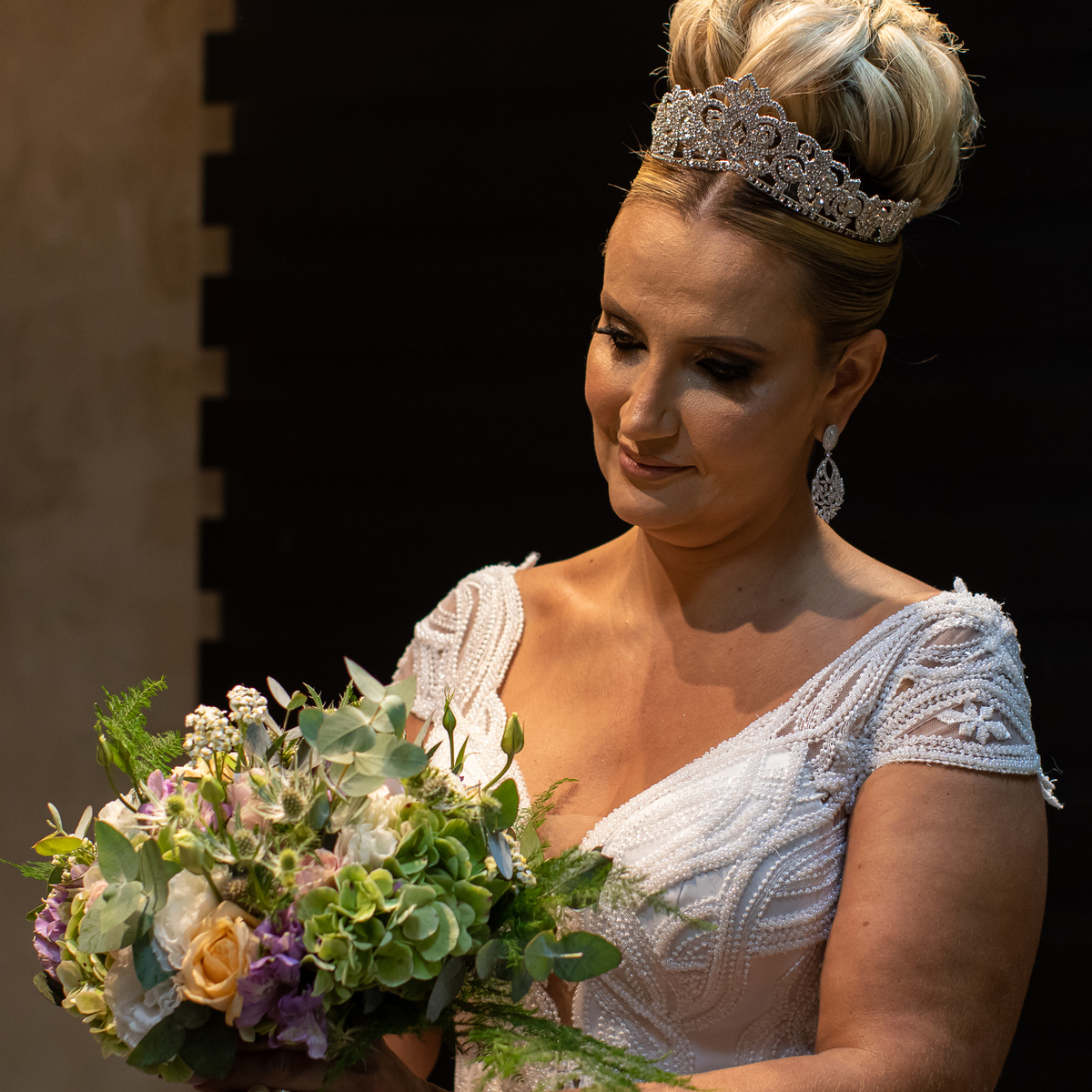 É ali que a noiva respira fundo, abraça a mãe, segura o buquê pela primeira vez…